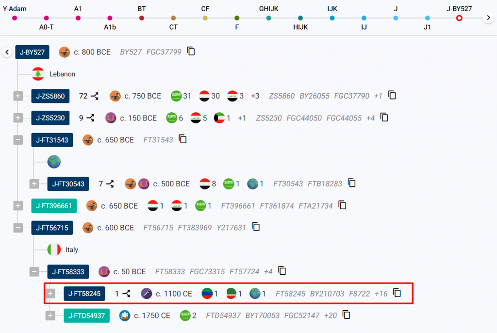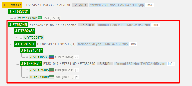 Гаплогруппа J1. Наиболее глубокая прогнозная линия J1 >> P58 >> FT58245