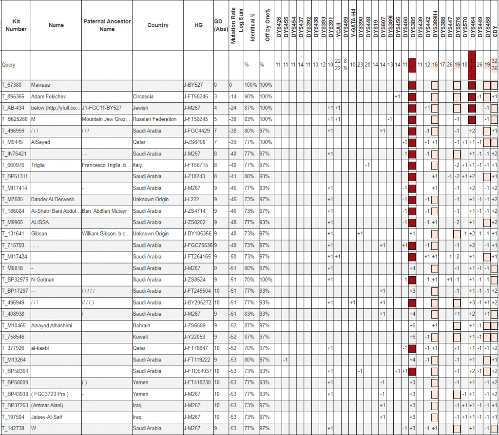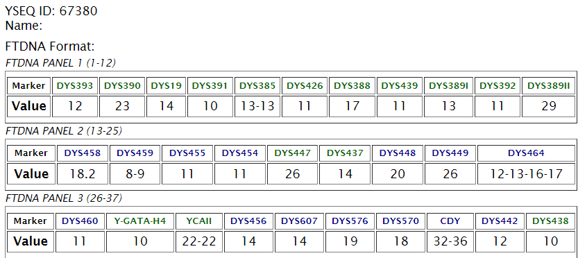 Исследовано 37 маркеров в лаборатории YSEQ.