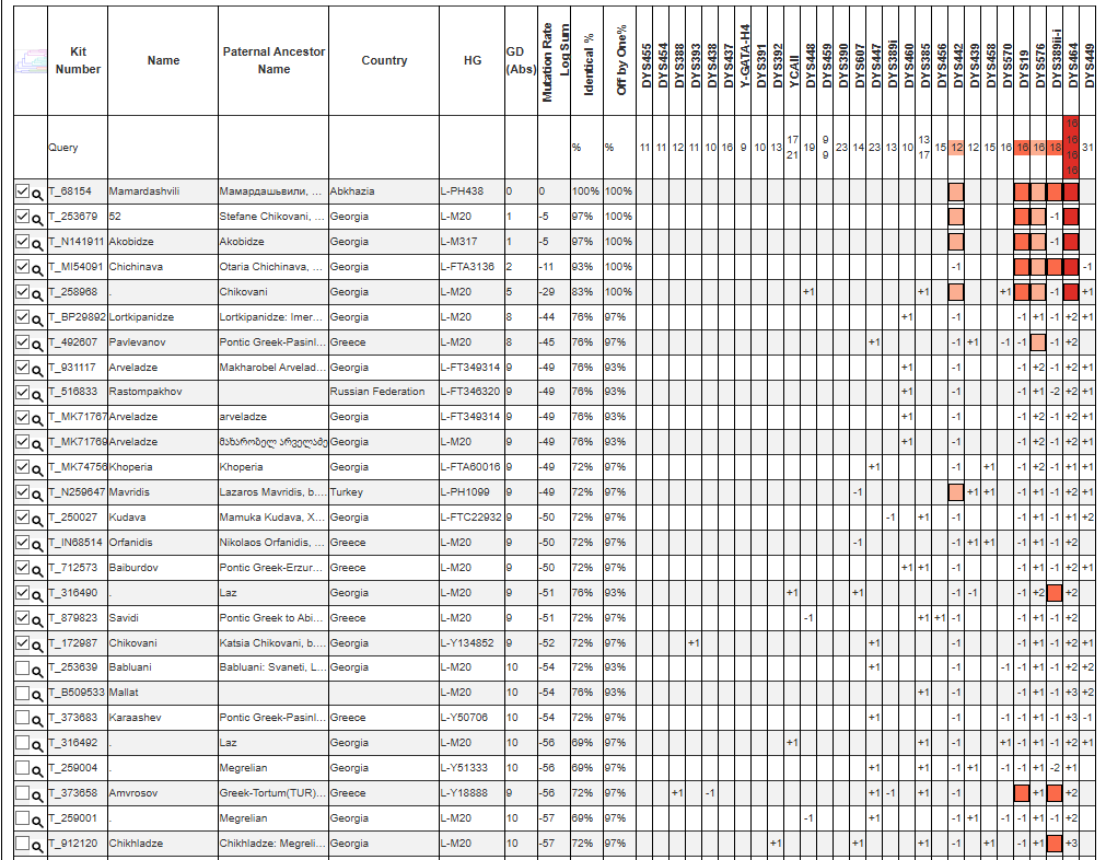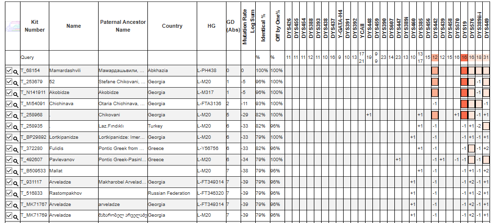 Протестированный принадлежит к грузинской дворянской фамилии из Западной Грузии (Имеретия, Мегрелия), представитель которой в 1920 г. осел в Бзыпской Абхазии в поселке (аҳабла) Гарԥ села Отхара (Уаҭҳара), в последствии женившись на местной абхазке.