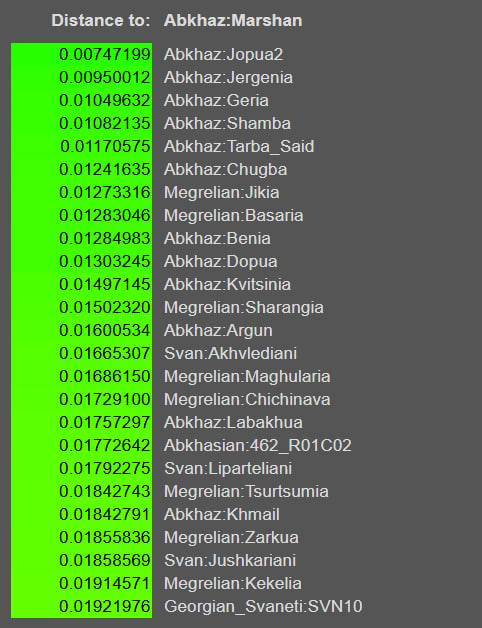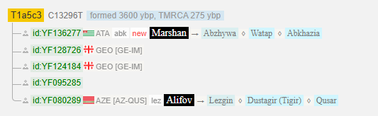 Маршан образовал ветвь с двумя Имеретинцами и Лезгином из Кусарского района Азербайджана. Общий предок по женской линии всех четырёх людей жил 275 лет тому назад.