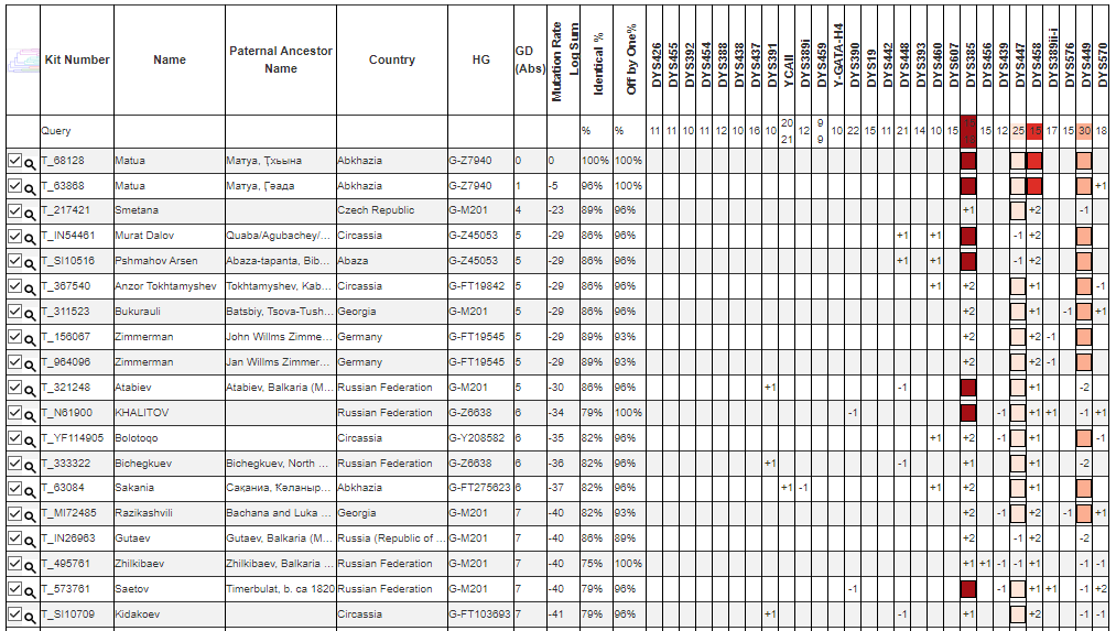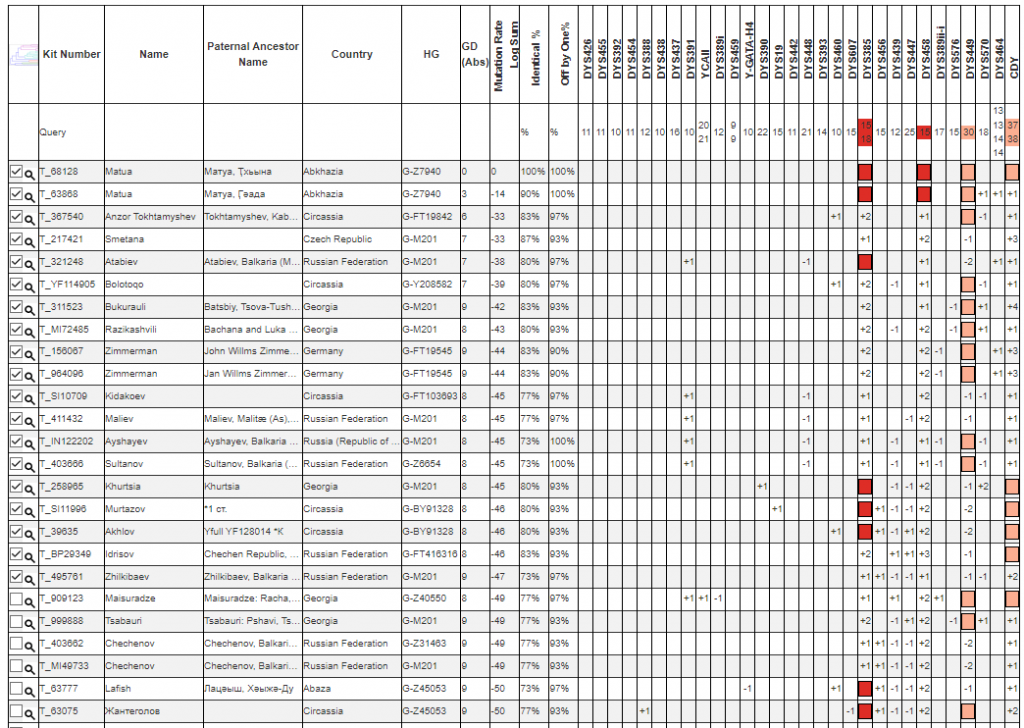 Поиск STR-совпадений в базе STR Match Finder помогает найти потенциальных родственников по мужской линии среди других протестированных из той же популяции. Мерой близости при этом служит генетическая дистанция, зависящая от числа мутационных различий