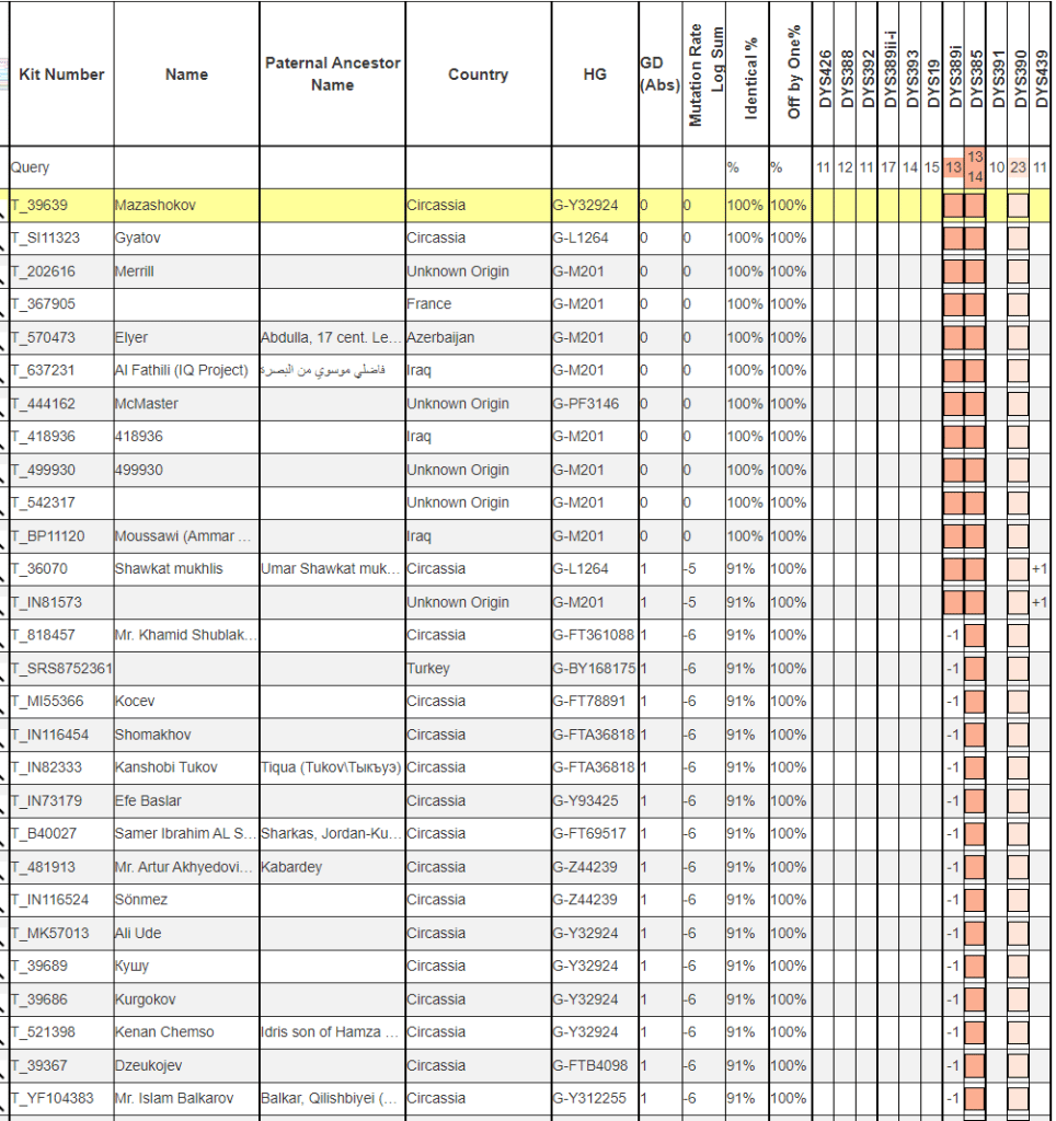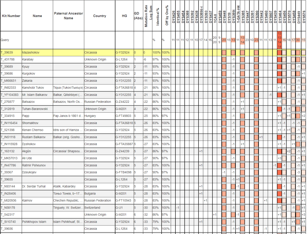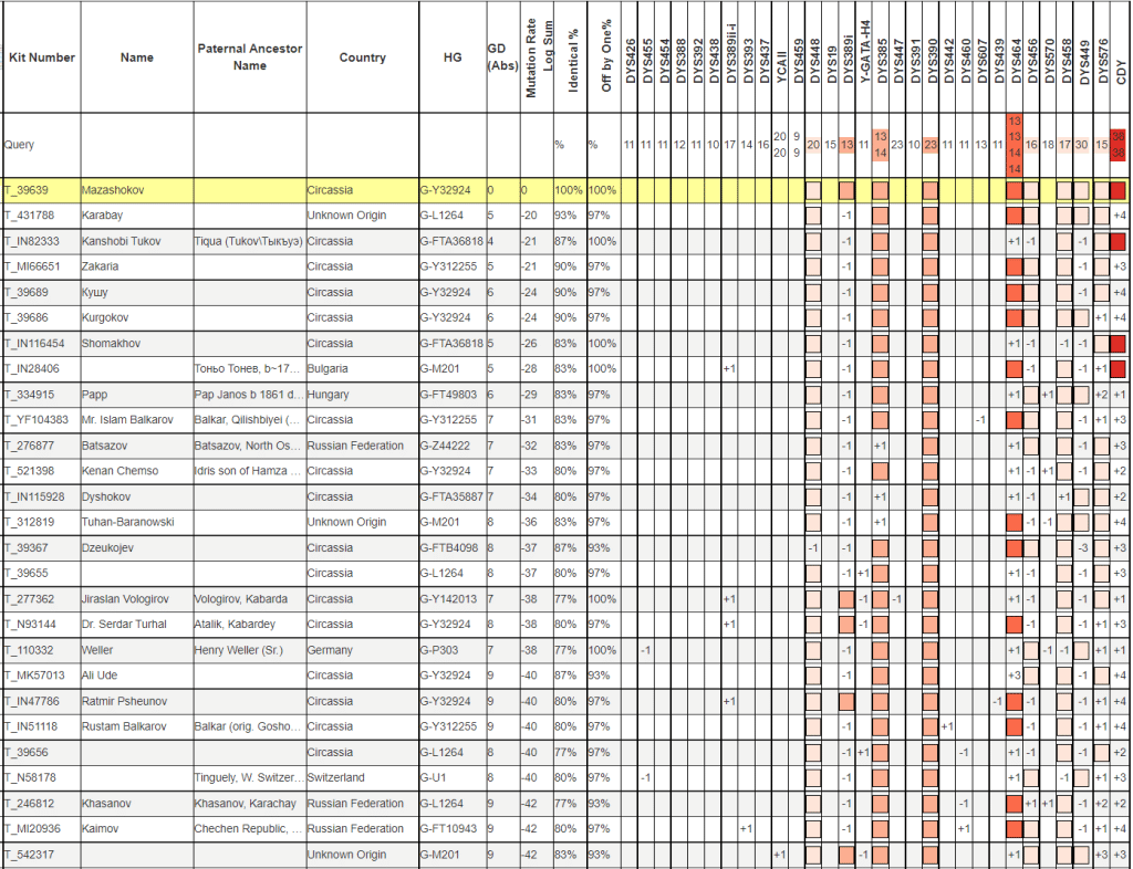 С учетом списка совпадений есть шанс, что Мазашоков может попасть в субклад G-Y237358