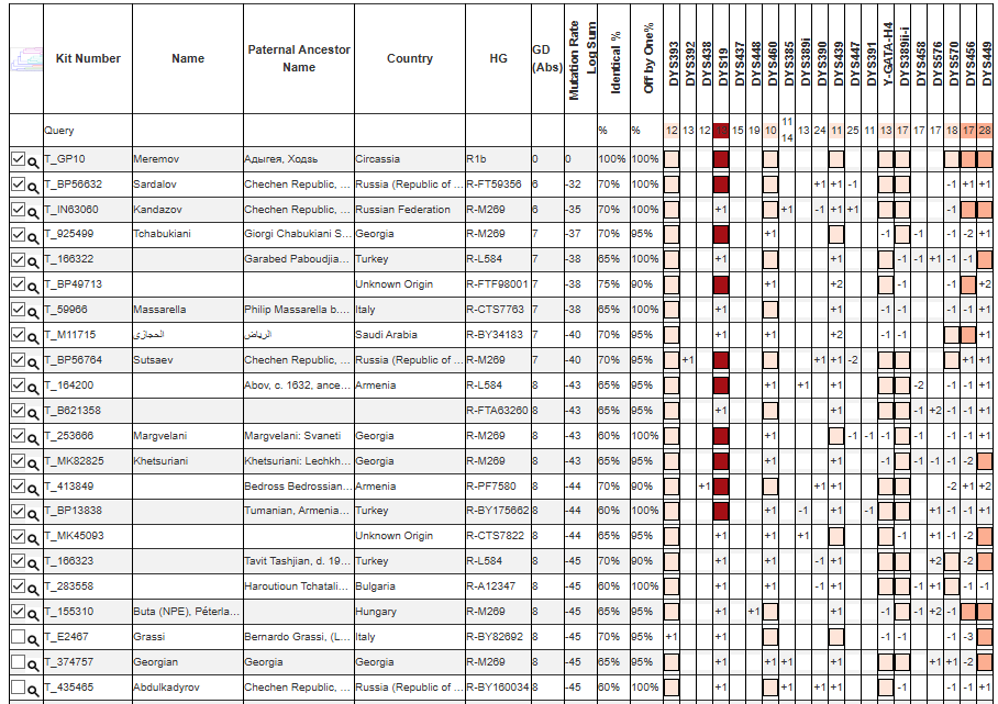 Поиск STR-совпадений в базе STR Match Finder помогает найти потенциальных родственников по мужской линии среди других протестированных из той же популяции. Мерой близости при этом служит генетическая дистанция, зависящая от числа мутационных различий