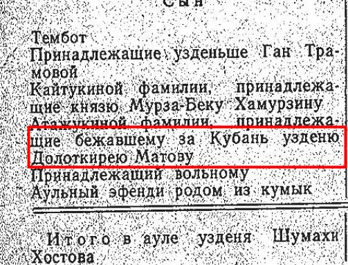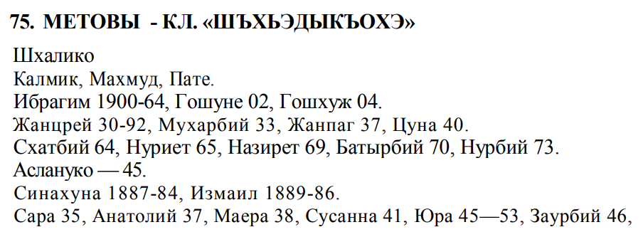 породистых кобылиц), Дамоковы, Метовы — появляются и кулаческие элементы: Тхабисимов Хаджиуша — 1000 овец, Хамуков Хаджигуля и другие»
