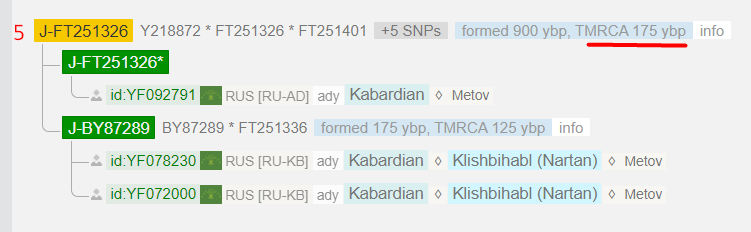 J-Y94477 уже чисто кабардинская ветка. Последний общий предок этой линии жил примерно 900 лет назад.