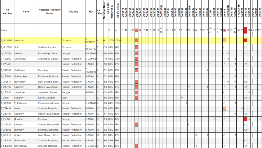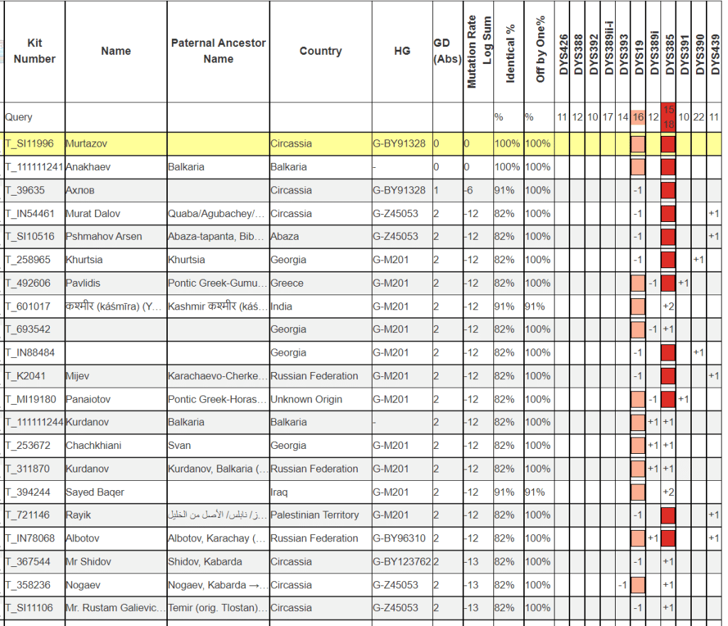Поиск STR-совпадений в базе STR Match Finder помогает найти потенциальных родственников по мужской линии среди других протестированных из той же популяции. Мерой близости при этом служит генетическая дистанция, зависящая от числа мутационных различий