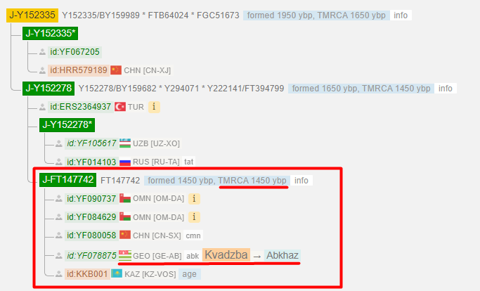 Гаплогруппа: J2 >> L581 >> PH1795 >> Y152278