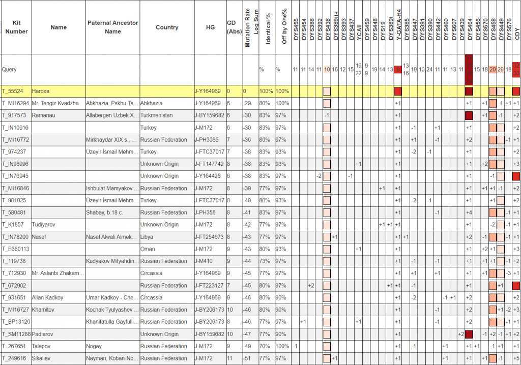 Исследовано 37 маркеров в лаборатории YSEQ.