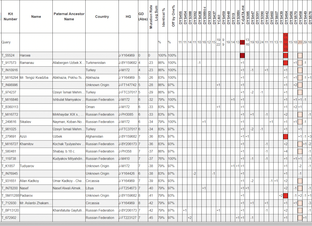 Поиск STR-совпадений в базе STR Match Finder помогает найти потенциальных родственников по мужской линии среди других протестированных из той же популяции. Мерой близости при этом служит генетическая дистанция, зависящая от числа мутационных различий