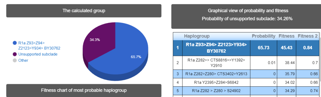 Гаплогруппа R1a. Прогнозный субклад относится к одной из 2х самых распространенных у нас веток гаплогруппы R1a — R-BY60213.