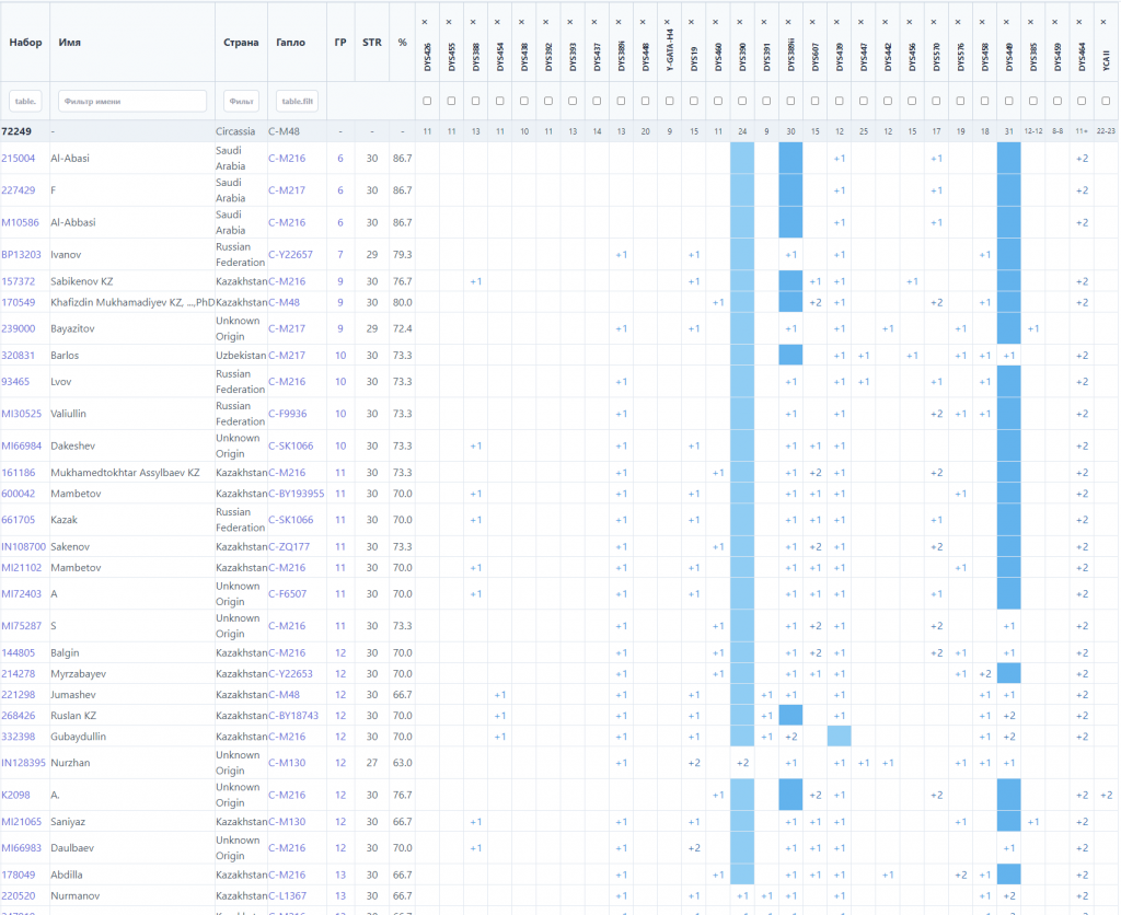 По ссылке вы можете познакомится со статистикой. Сколько всего протестировано, информация по субэтносам, гаплогруппа итд.