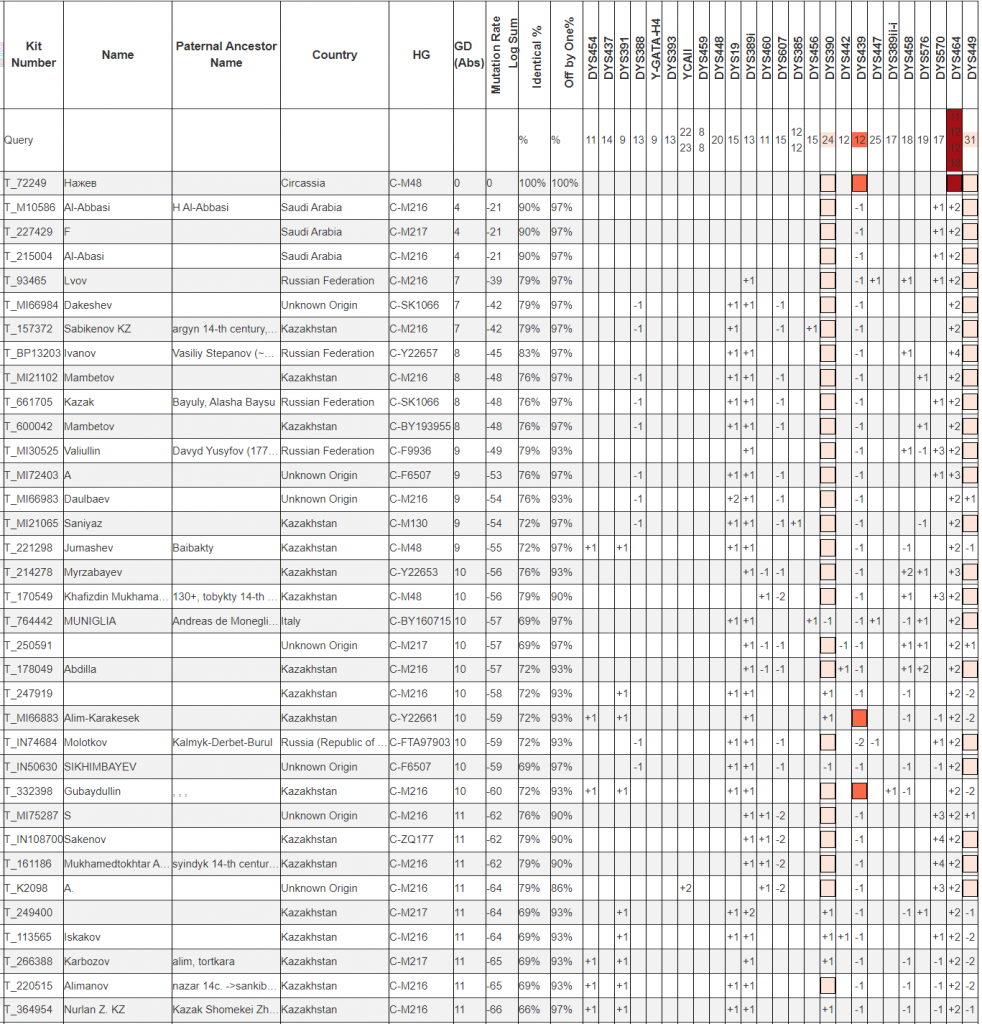 Поиск STR-совпадений в базе STR Match Finder помогает найти потенциальных родственников по мужской линии среди других протестированных из той же популяции. Мерой близости при этом служит генетическая дистанция, зависящая от числа мутационных различий