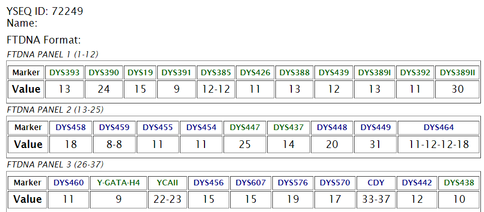 Исследовано 37 маркеров в лаборатории YSEQ.