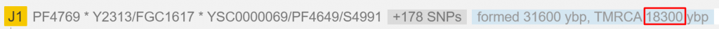 Т.е. любой кто не J1 находится на отдалении больше 18 тыс. от любого J1. На самом деле даже больше. Но внутри J1 тоже за эти 18 тыс. лет образовалось множество новых ветвей. Пропустив весь этот путь обратимся к самой свежей ветке — Y271430.