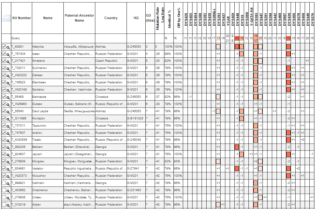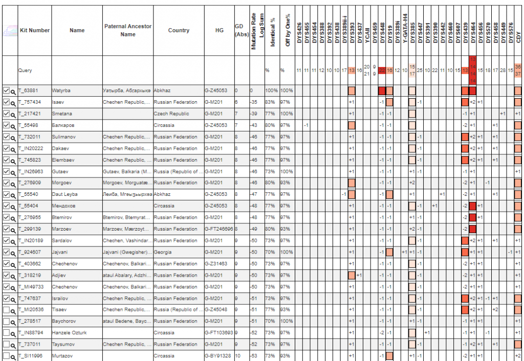 Поиск STR-совпадений в базе STR Match Finder помогает найти потенциальных родственников по мужской линии среди других протестированных из той же популяции. Мерой близости при этом служит генетическая дистанция, зависящая от числа мутационных различий