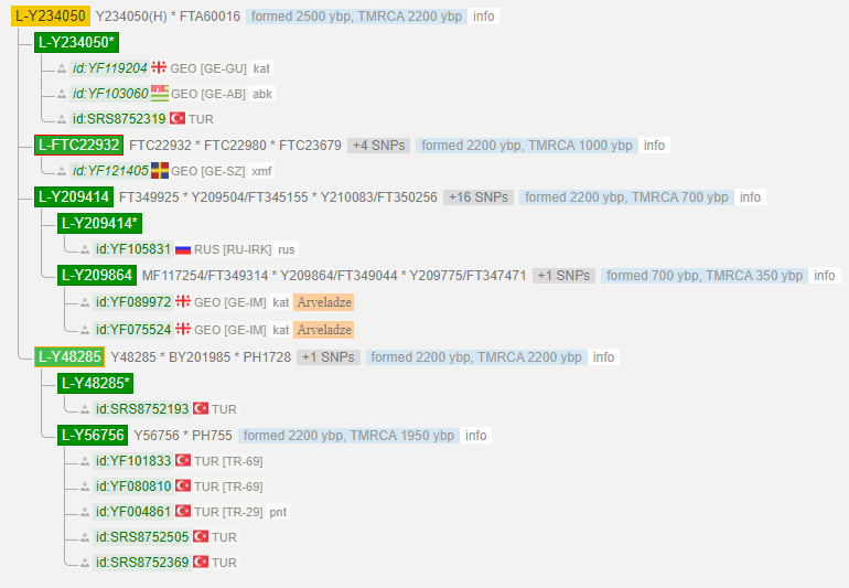 Adam> A0-T > A1 > A1b > BT > CT > CF > F > GHIJK > HIJK > IJK > K > LT > L > L-M22 > L-M317 > L-SK1412 > L-Y16208 > L-Y16366 > L-Y16187 > L-190209 > L-Y16384 > L-PH438 > L-Y18413 > L-Y18891 > L-F14761 > L-Y234050 > L-FTC22932