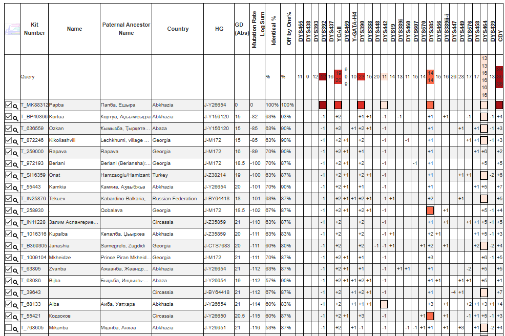 Протестированный принадлежит к абхазской дворянской (аамсҭа) фамилии Папба. Фамилия была довольно распространена в Горной Абхазии, относительно же появления дворянской ветки в Бзыпской Абхазии есть следующая история, рассказанная Амаба Д.Е в начале 20 в.: «Отец моего прадеда (сабду иабду), по имени Амаба Чкул (Амаба Чқәыл) вышел из племени Ахчипсоу (Аҳҷыԥсоу) и поселился в Звандрипше (Жәандрыԥшь), вместе с ним пришли [с Ахчыпсоу] Даутиа (Дауҭиа) и три Папба, последние привели с собою 18 дворов батраков по фамилии Кесалаа (Қьасалаа).» Исходя из этой истории Папба спустились к берегу около 1750 г.