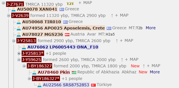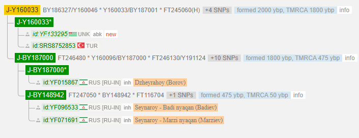 Гаплогруппа: J2a-M67 >> J-V2639 >> J-Y160033