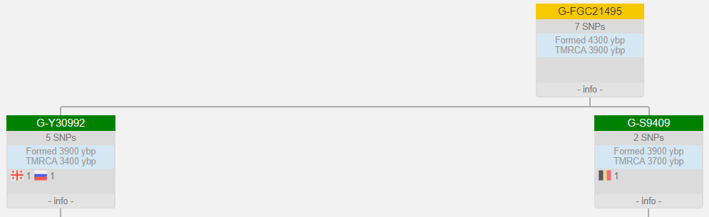 Возраст жизни общего предка всех кто попадает в эту ветку ~ 3900 лет. FGC21495 распадается на 2 линии Y30992 и S9409.