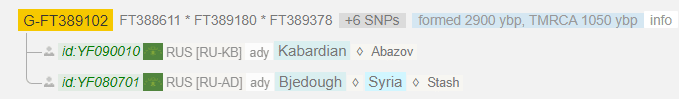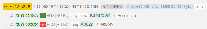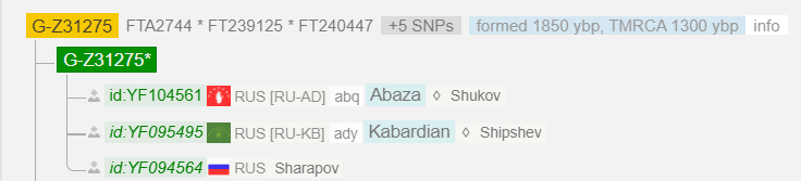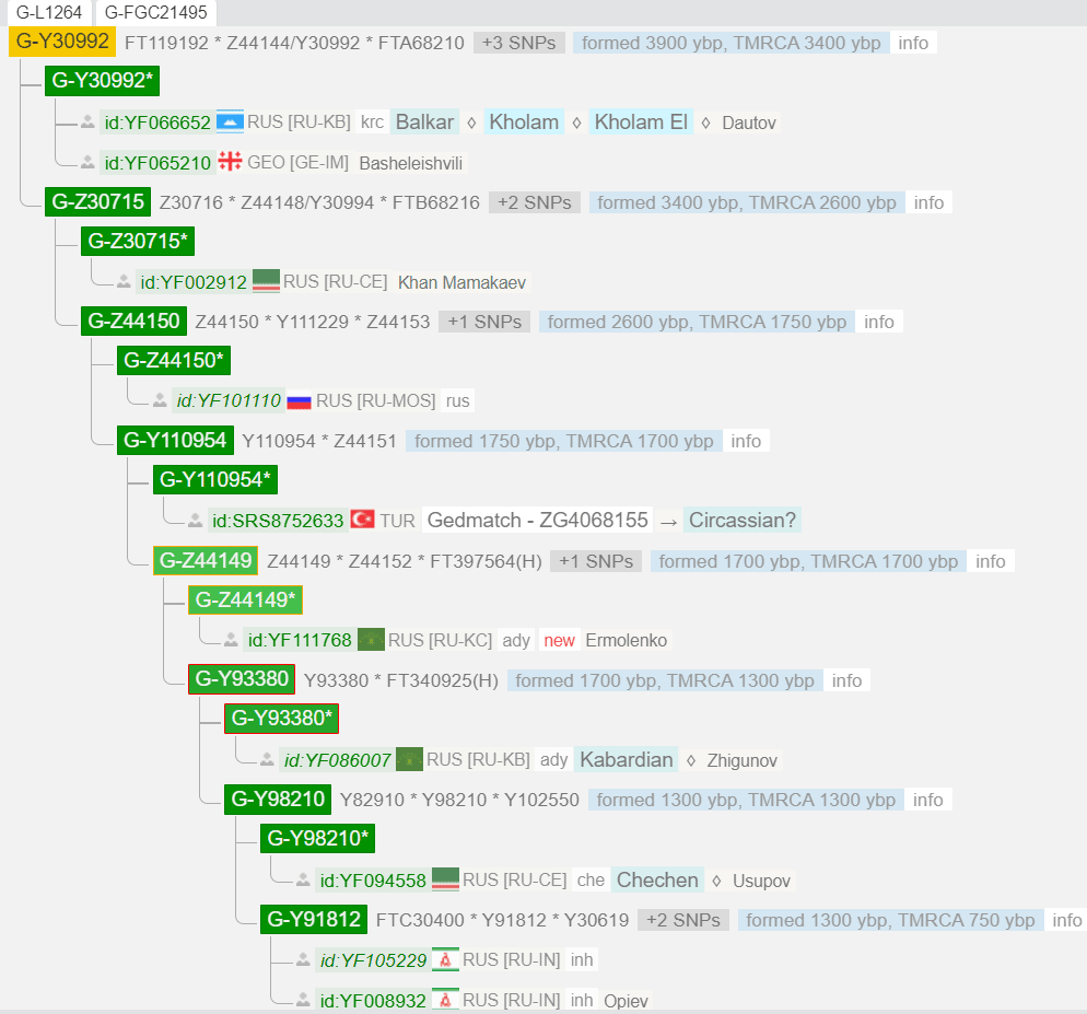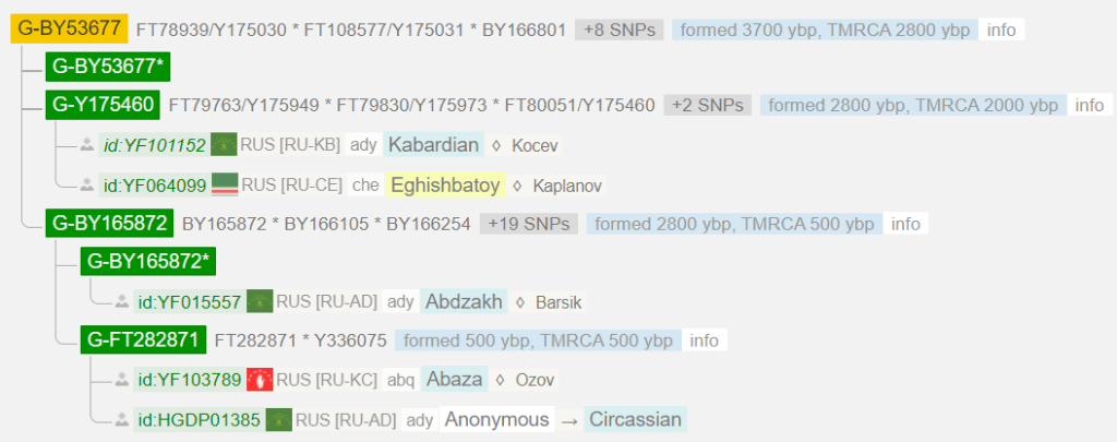 1. Y175460 — чеченец Капланов и кабардинец Коцев. Дистанция до общего предка ~ 2000 лет.