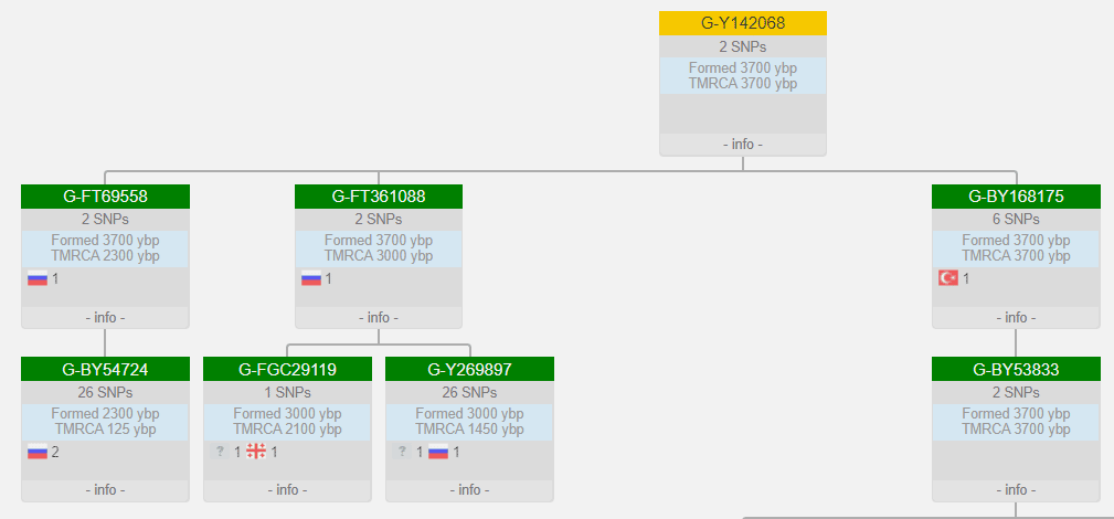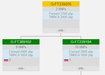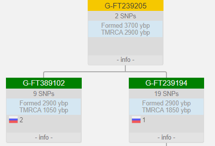 В центре Y142068 > FT361088. Возраст до общего предка 3000 лет.