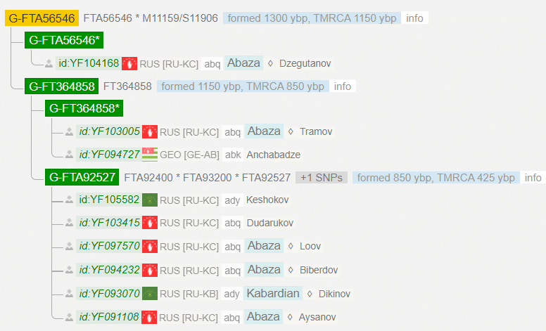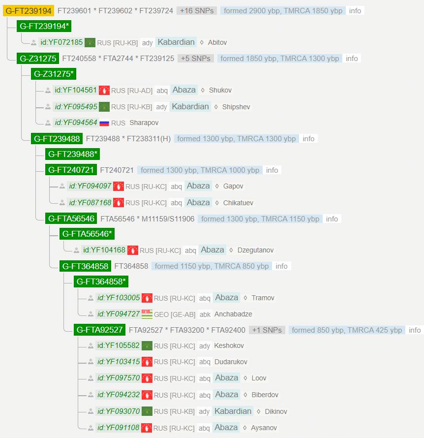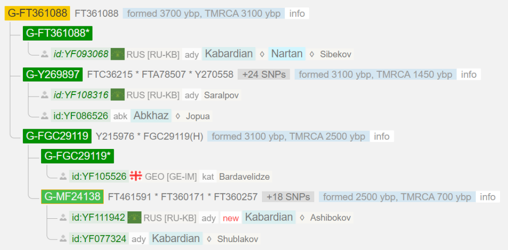 В нее попадают кабардинец Абазов и бжедуг Сташ. Дистанция до общего предка ~ 1000 лет. Из тех у кого нет глубоких тестов, в этот субклад прогнозируются: