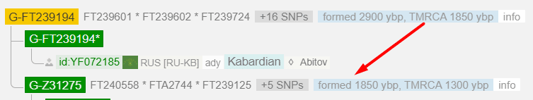 Дистанция для общего предка ~ 2800 лет. Здесь 2 линии: