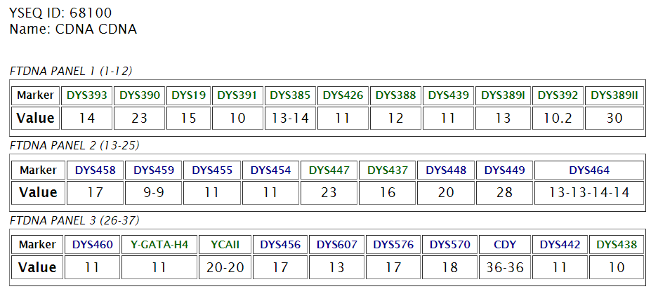 Исследовано 37 маркеров в лаборатории YSEQ.