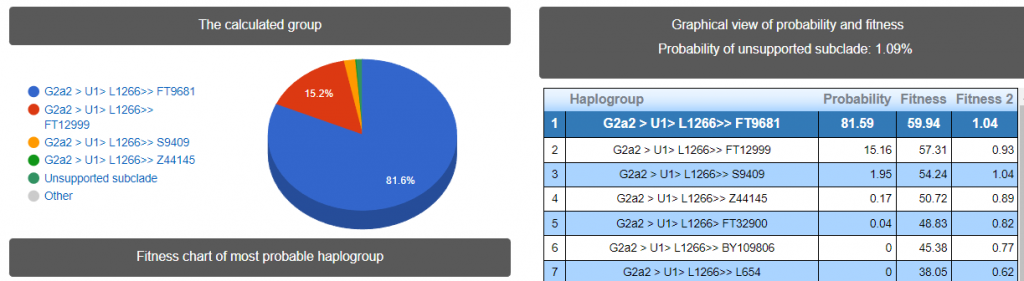 Выявлена гаплогруппа G2a2. Субклад G-L1264 >> Y32924