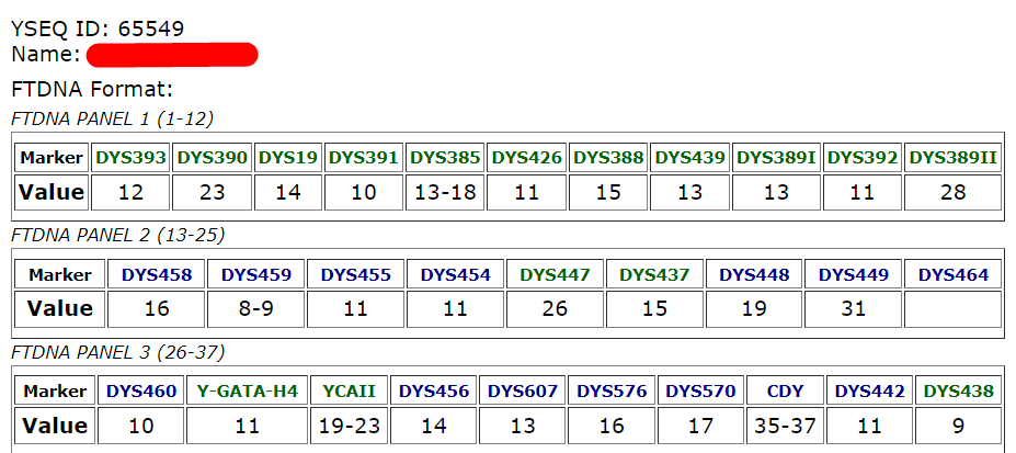 Исследовано 37 маркеров в лаборатории YSEQ.