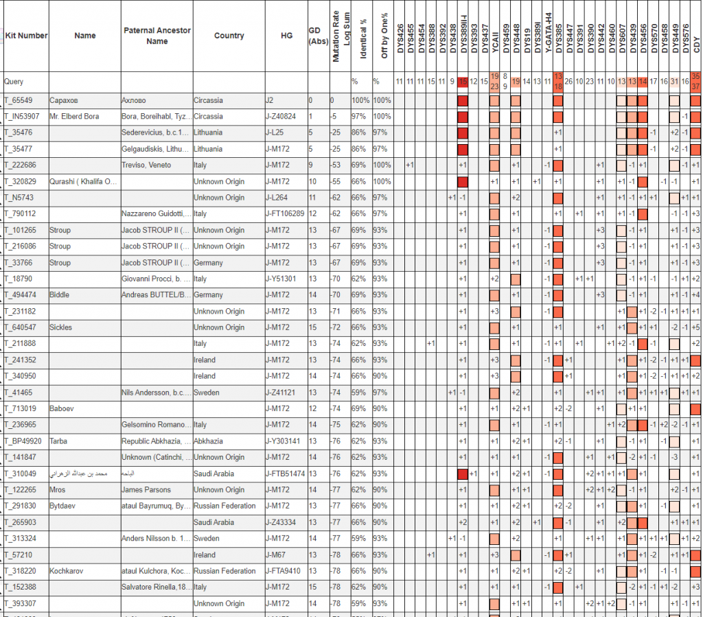 По результатам теста выявлено близкое совпадение с Боровым (Бора). Для более точной оценки дистанции между ними требует углубление теста Сарахова. Интересно, что в относительной близости к Сарахову и Борову несколько Литовских фамилий.