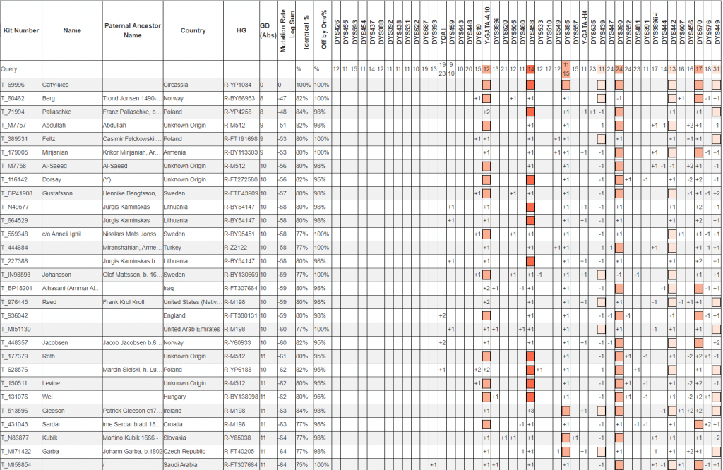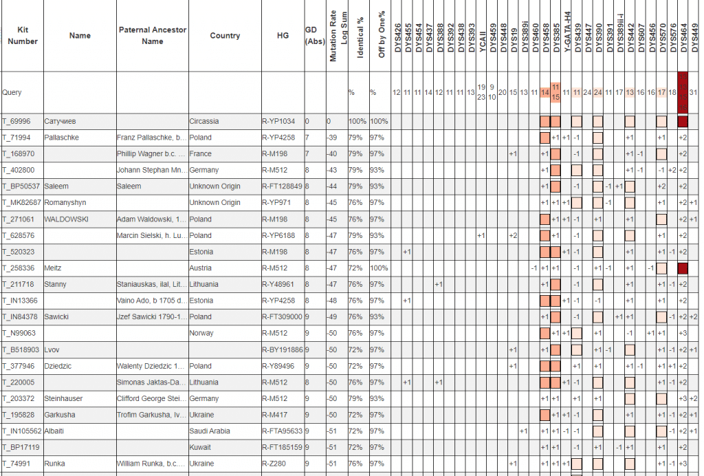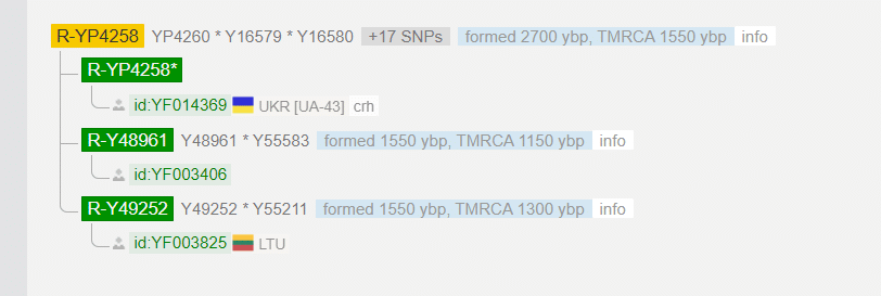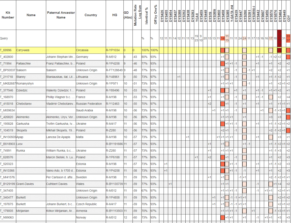 Однако в списке совпадений Сатучиева представители разных веток R1a. Эта гаплогруппа сложная для маркерного анализа. Для 100% подтверждения рекомендуется углубление теста либо точечных тест на предсказанную линию YP1034. (19$).