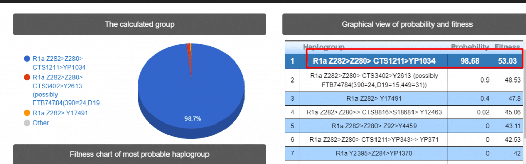 Выявлена гаплогруппа R1a >> Z280. Наиболее вероятный субклад >> CTS1211