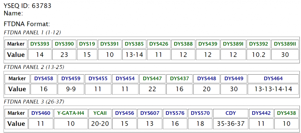 Исследовано 37 маркеров в лаборатории YSEQ.
