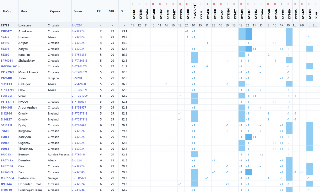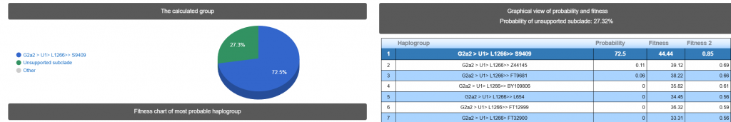 Сделано Y37 маркеров в YSEQ, выявлена гаплогруппа G2a2-L1264.