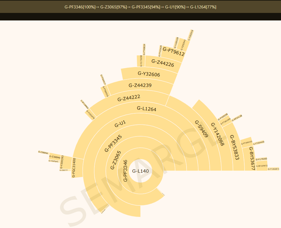 A0-T > A1 > A1b > BT > CT > CF > F > GHIJK > G > G-P287 > Y238 > P15 > L1259 > L30 > CTS574 > CTS2488 > P303 > CTS796 > L140 > PF3346 > Z3065 > PF3345 > Y507487 > U1