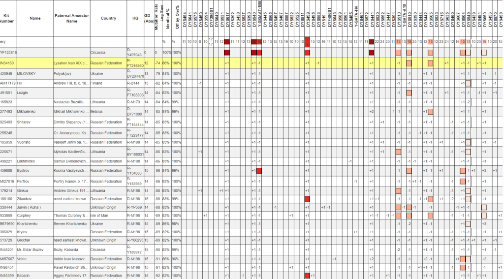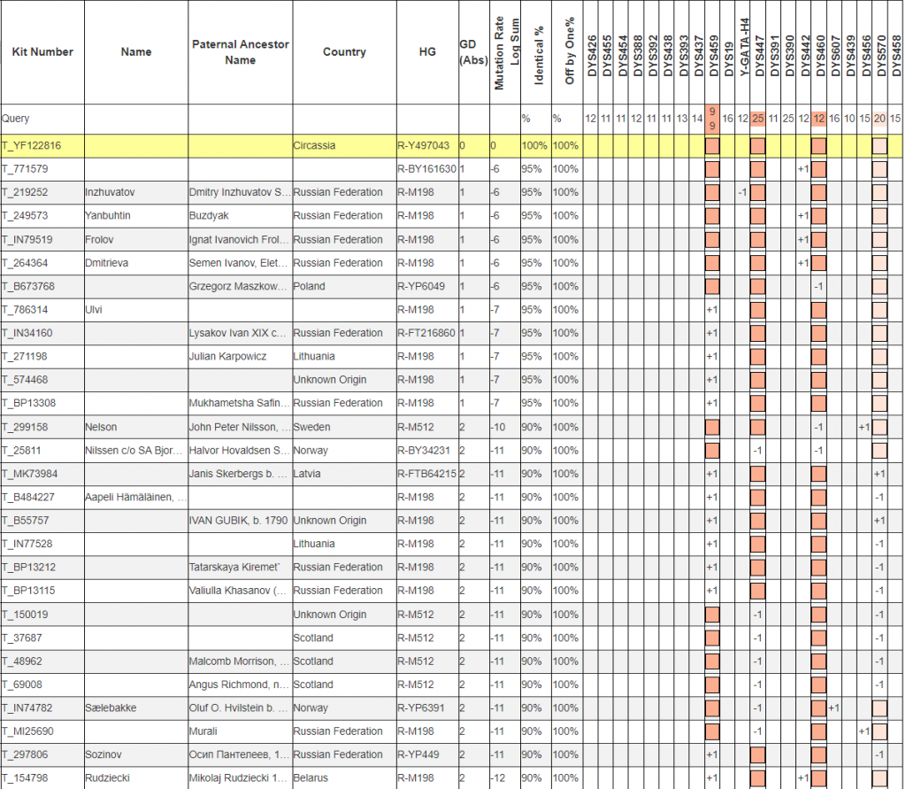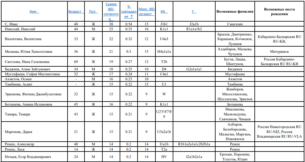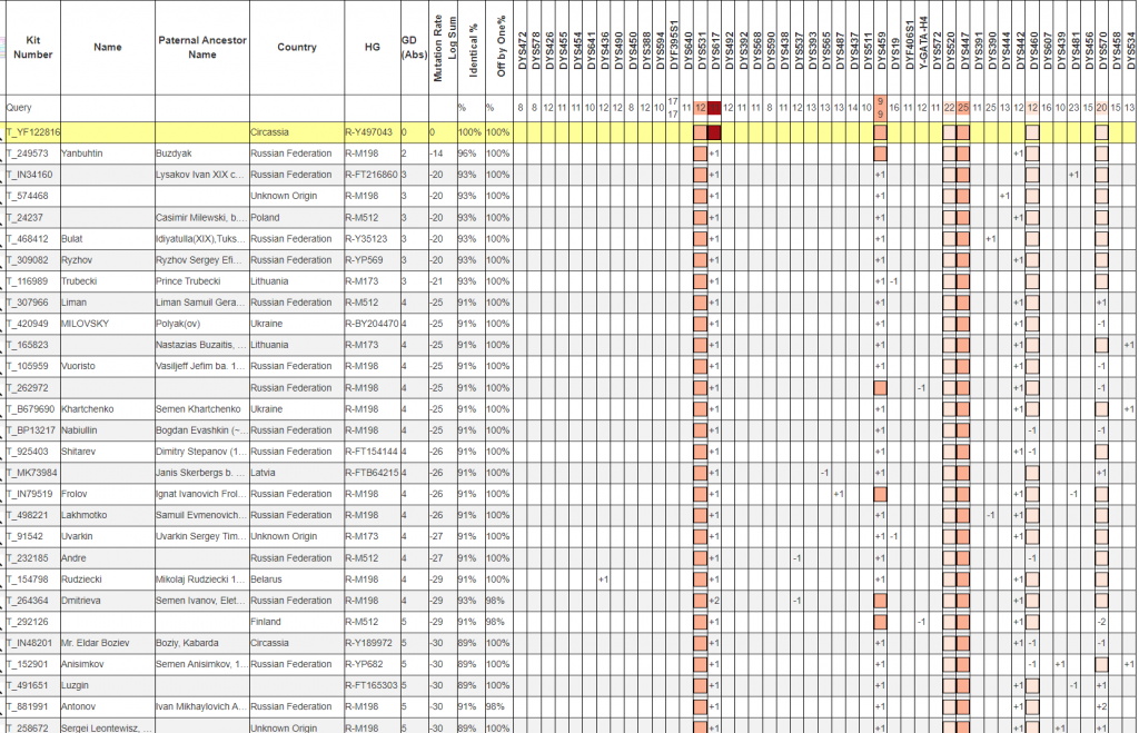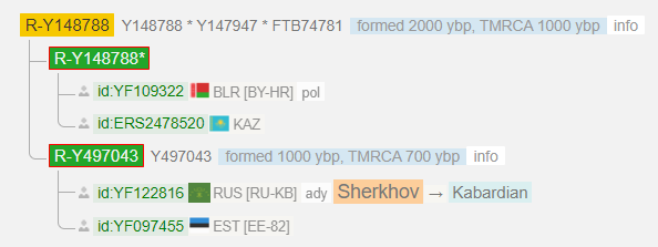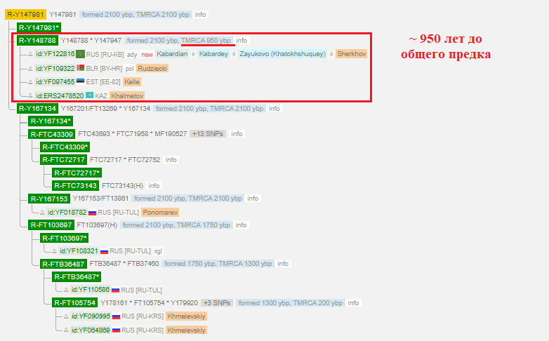 Очень редкая линия. Ближайший совпаденец тоже с КБР а дальше огромная дистанция в 14 тыс. лет с остальными.