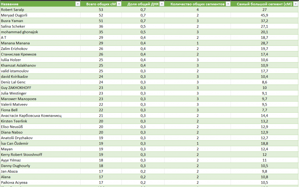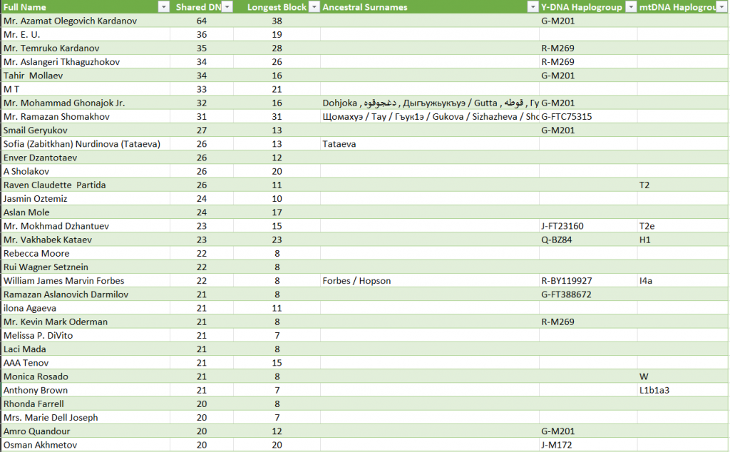 По результатам аутосомного теста близких совпадений не выявлено. Ближайшие на уровне 6-7 и больше поколений.