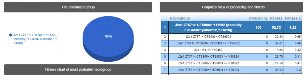 Выявлена гаплогруппа J2a. Наиболее вероятный субклад M67 >> Y11200 >> Y30811