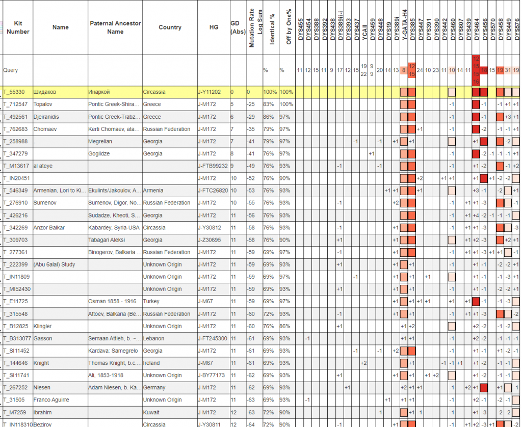 Исследовано 37 маркеров в лаборатории YSEQ.