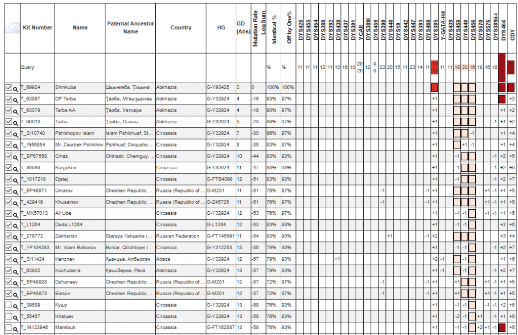 Поиск STR-совпадений в базе STR Match Finder помогает найти потенциальных родственников по мужской линии среди других протестированных из той же популяции. Мерой близости при этом служит генетическая дистанция, зависящая от числа мутационных различий
