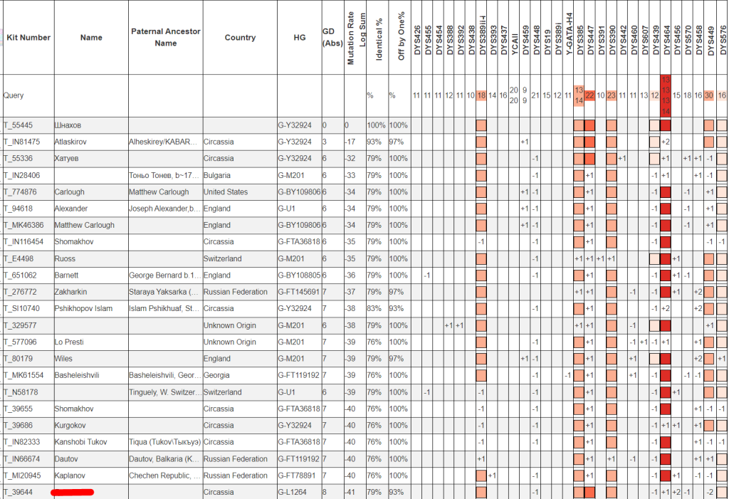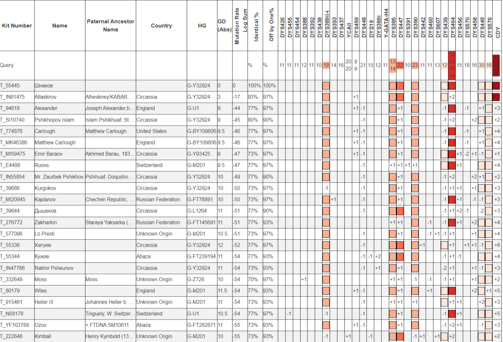 По результатам теста наиболее близкое совпадение выявлено с Атласкировым, кабардинцем из аула Жако.