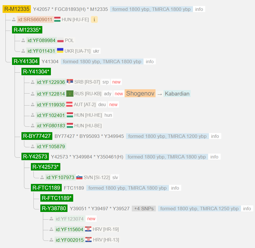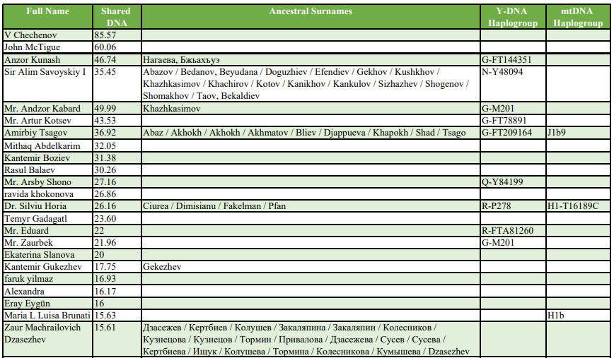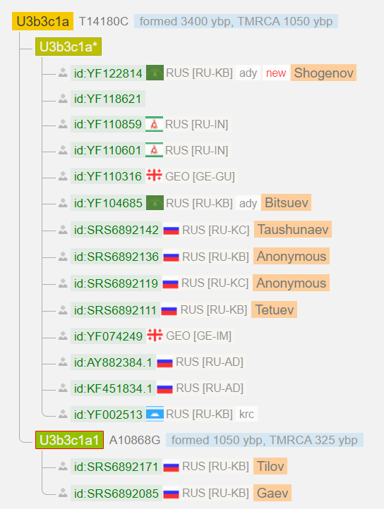 Линия предков протестированного пока не известна. К тому же, в чегемском районе может быть много неродственных ветвей рода.