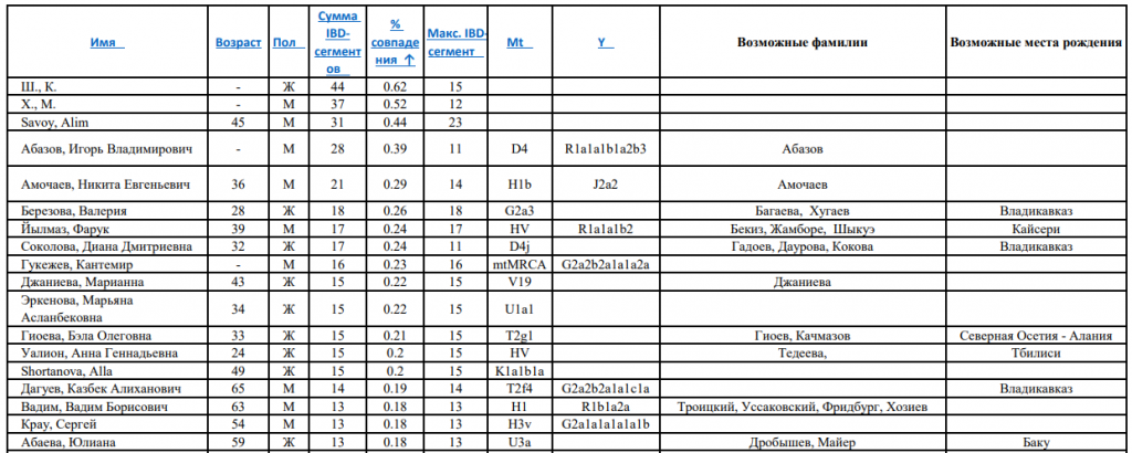Ближайшие аутосомные совпаденцы Шогенова