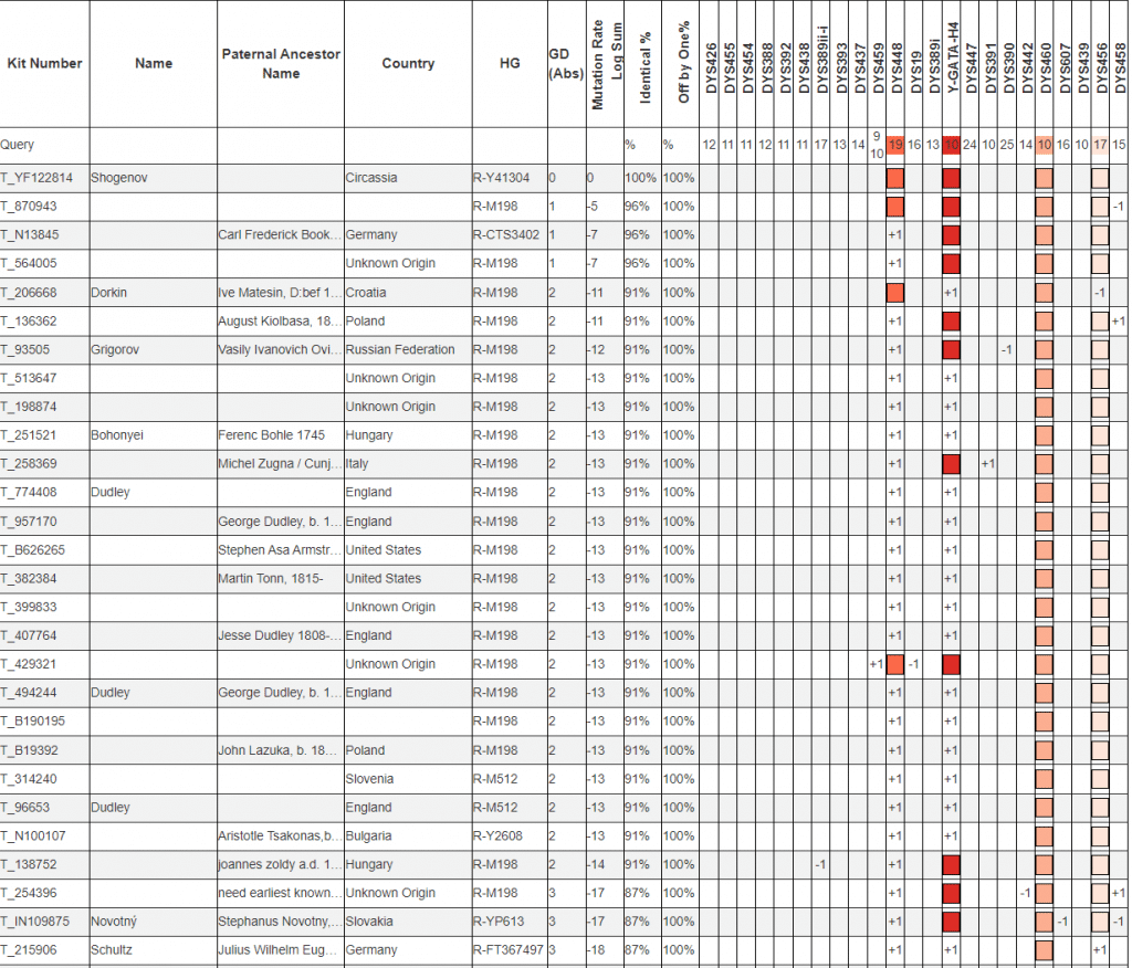 Поиск STR-совпадений в базе STR Match Finder помогает найти потенциальных родственников по мужской линии среди других протестированных из той же популяции. Мерой близости при этом служит генетическая дистанция, зависящая от числа мутационных различий