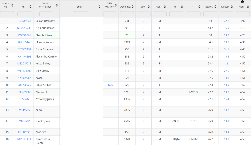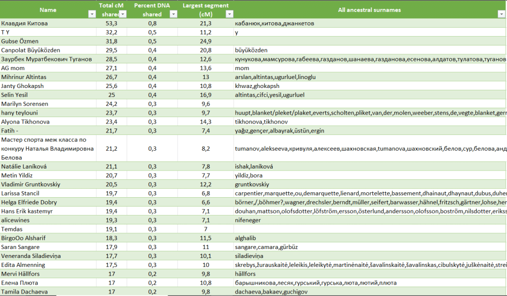 К сожалению, многие не указывают своих имен. Генотек работает немного по другому принципу, они значительно обрезают совпадающие участки ДНК.