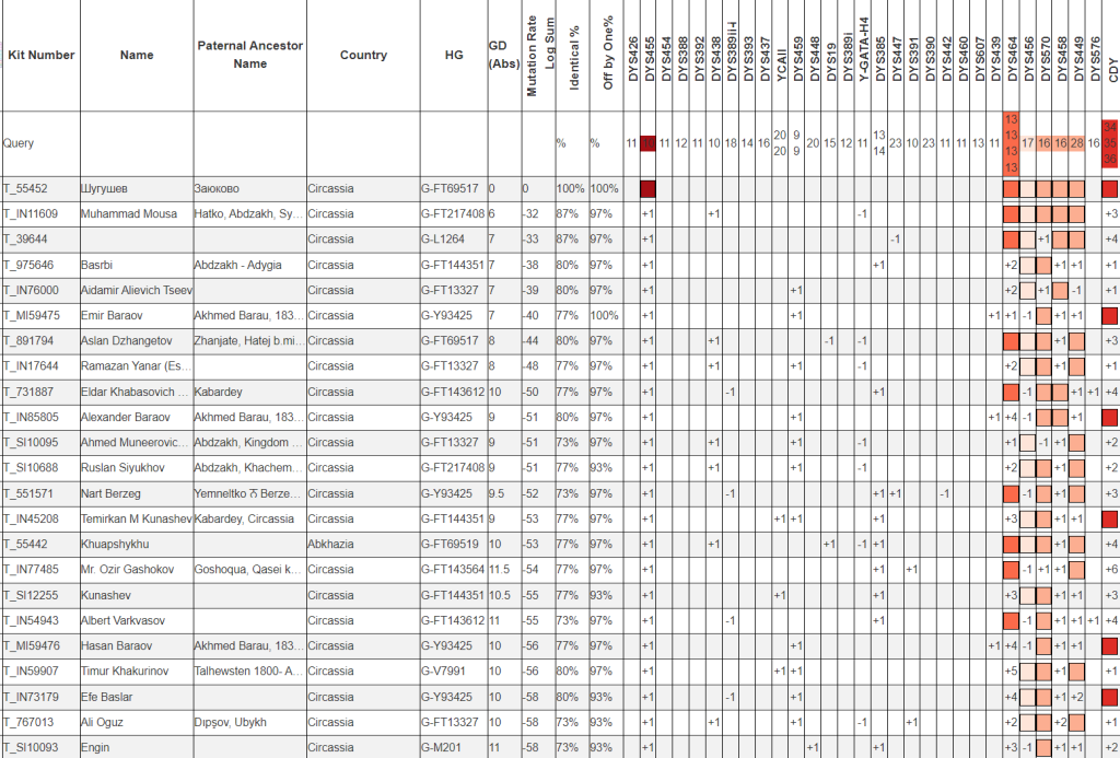Шугушев из с. Заюково попал в самую распространенную у адыгов линию G2a2 >> G-L1264.