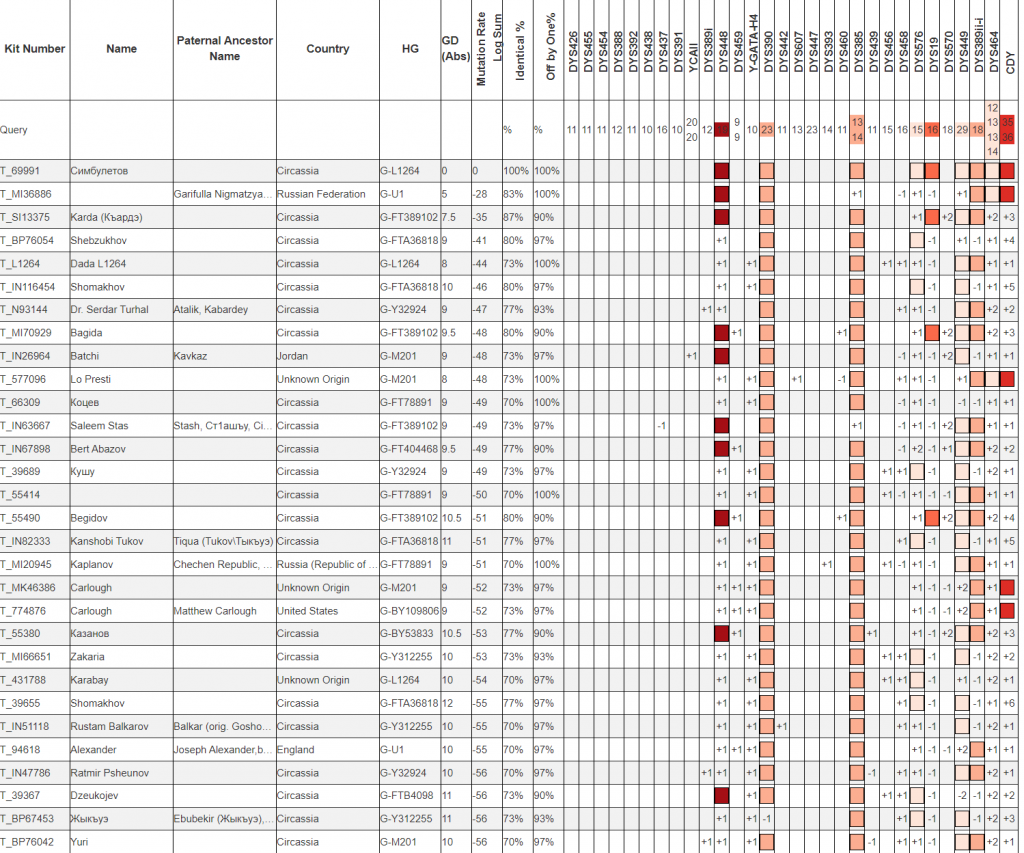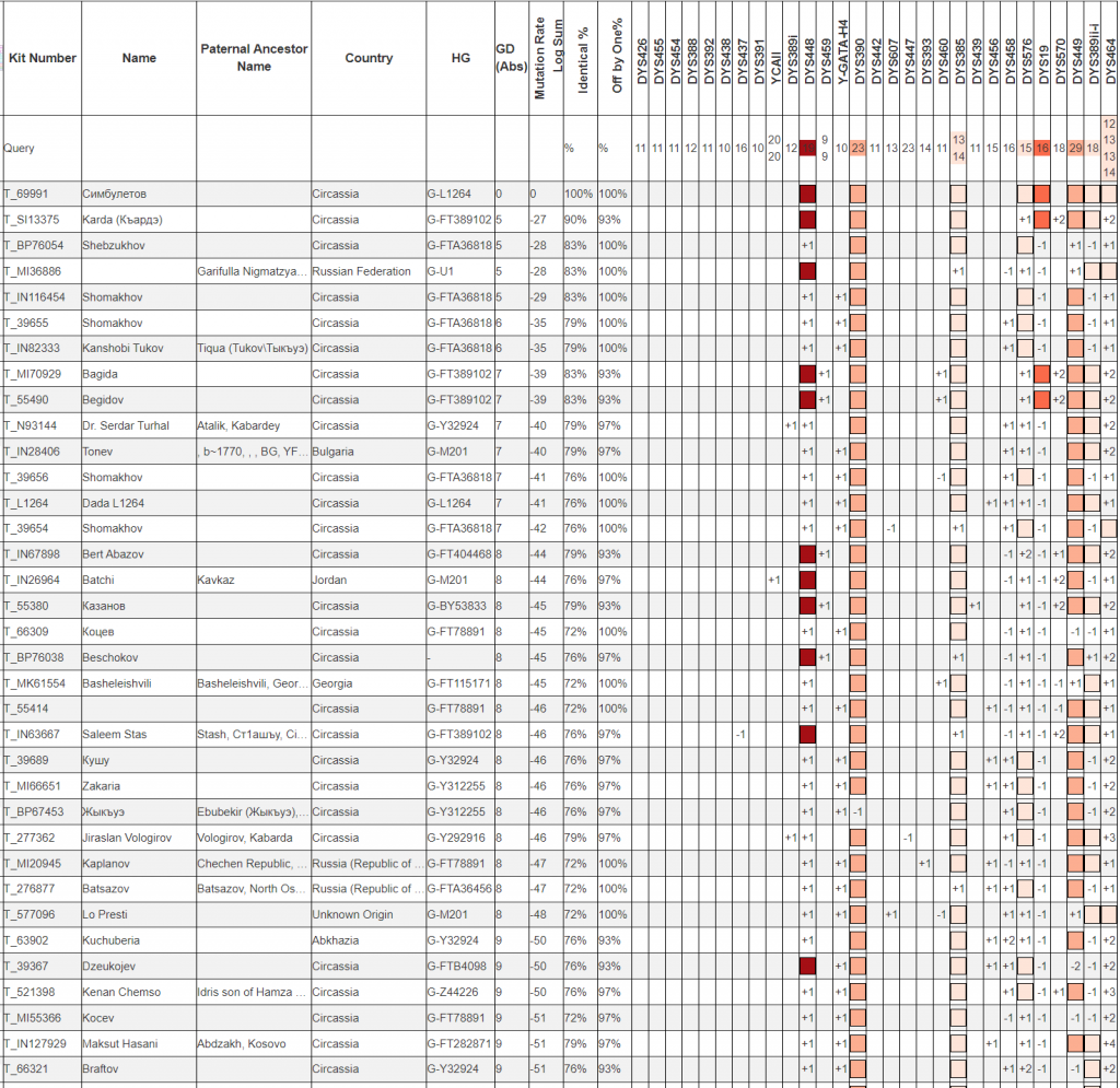 Исследовано 37 маркеров в лаборатории YSEQ.