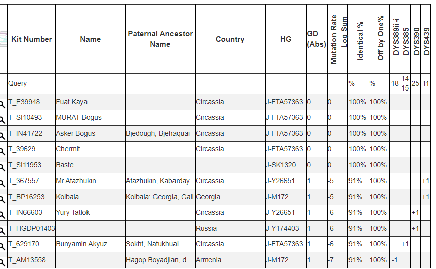 Туда же попадут Кая-Мэлыщ и Чермит. Возраст ветки, скорее всего, не сильно изменится. На скриншоте ниже заметно, что эти западно-адыгские фамилии по маркерам показывают близкие результаты.