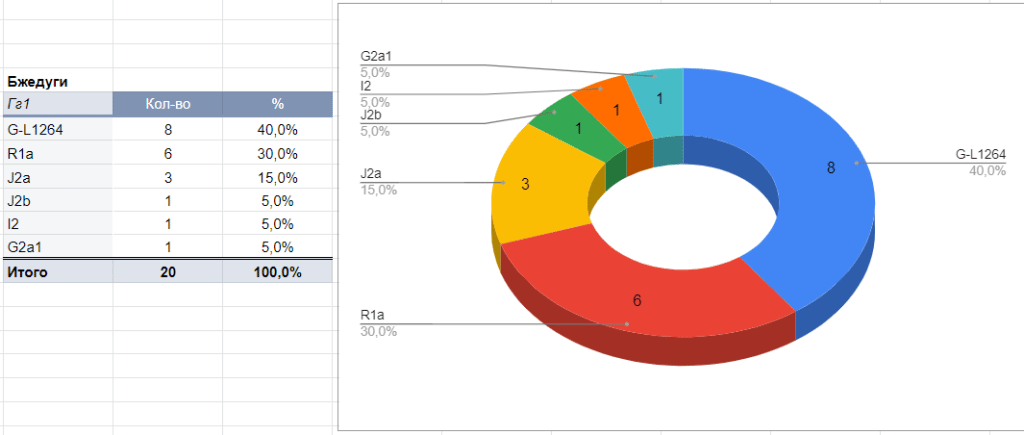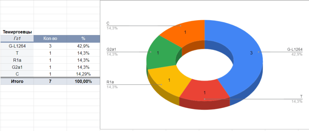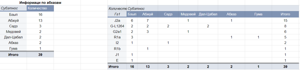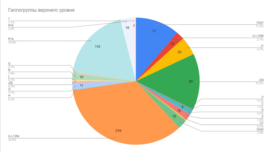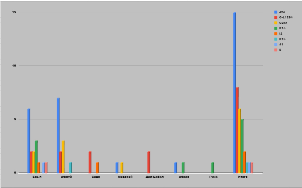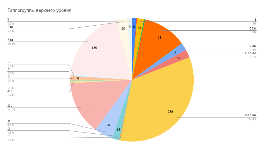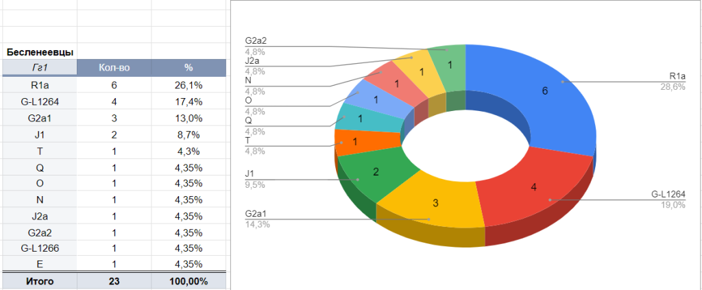 У Бесленеевцев самое интересное распределение гаплогрупп.
